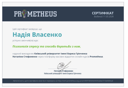 За результатами навчання Леся Рибалко-Рак і Надія Власенко отримали сертифікати, що підтвердили успішне опанування матеріалів курсу та здобуття нових професійних компетентностей у сфері психології стресу.