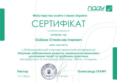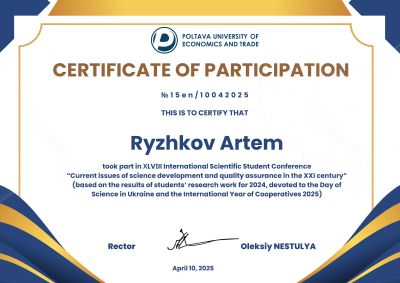 Науковий керівник: доктор економічних наук, професор Маркіна Ірина Анатоліївна.