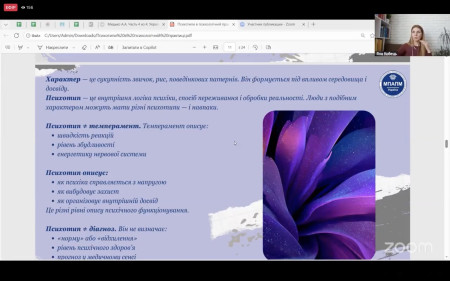 10 березня 2026 року студентки освітньо-наукової програми «Організаційна психологія» кафедри менеджменту Полтавського університету економіки і торгівлі Віолетта Радченко, Оксана Литовченко та Надія Власенко долучилися до онлайн-вебінару, присвяченого використанню психотипів у реальній психологічній практиці.